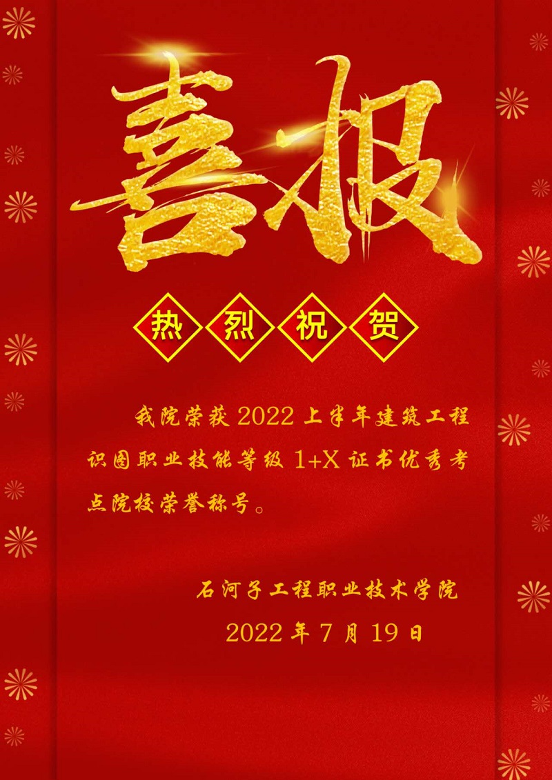 我院荣获2022上半学年建筑工程识图职业技能等级1+x证书优秀考点院校荣誉称号