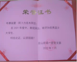 寒假期间,赛买提·库尔班在征得父母的同意下,按照就近就便原则,参与了当地村委会的政务实践活动。实践期间,积极做好会议记录,整理好台账,接听居民打来的咨询电话,还跟随村委会领导探望了贫困户,耐心细致地完成各项工作。他以细心、耐心的工作态度和饱满的工作热情,得到了村委会工作人员的一致好评。