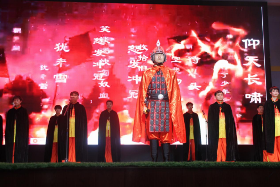 文艺汇演以经典名篇诵读《满江红》开场,气势磅礴的朗诵让人内心震撼。全词激奋人心、气势磅礴,充分表现了中华民族不甘屈辱、奋发图强的民族精神和爱国情怀。