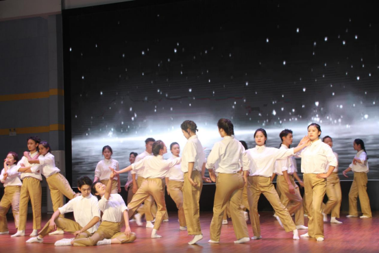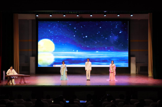 随后一个个满是活力与朝气的节目在舞台上完美呈现:说唱歌曲《麒麟》、古典舞《醉春风》、诗朗诵《春江花月夜》、歌曲《海阔天空》、话剧《可可托海的守矿人》,这些形式多样、精彩纷呈的节目让人心生赞叹。