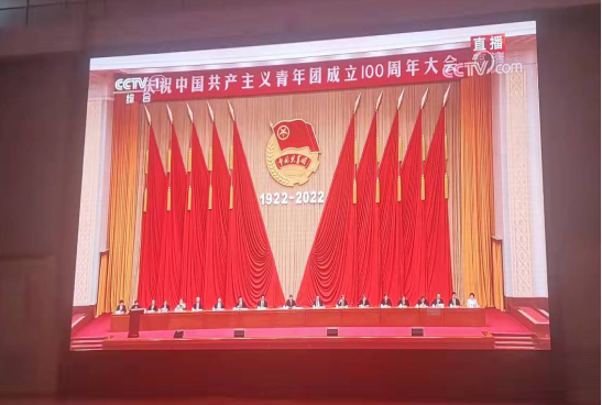 2022年是中国共产主义青年团成立100周年,2022年5月10日上午,人文社科系师生代表、学生会代表、社团代表、优秀团支部代表、优秀共青团干部和优秀共青团员代表齐聚于学术厅,收听收看在人民大会堂内隆重举行中国共产主义青年团成立100周年庆祝大会。